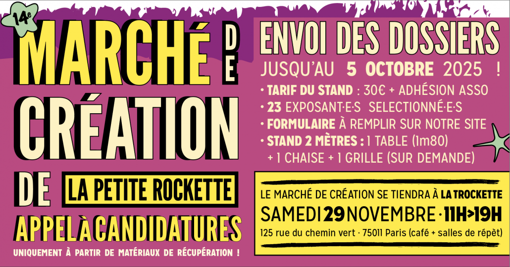 📍 À La Rockette Père-Lachaise : 125 rue du chemin vert – 75011 Paris • (M) Père-Lachaise 📆 Chaque 1er et 3eme vendredi du mois • 17H>18H30 👥 Tout public 🎟 Inscription obligatoire par email à visite@lapetiterockette.org 💶 Gratuit La Petite Rockette est[...]