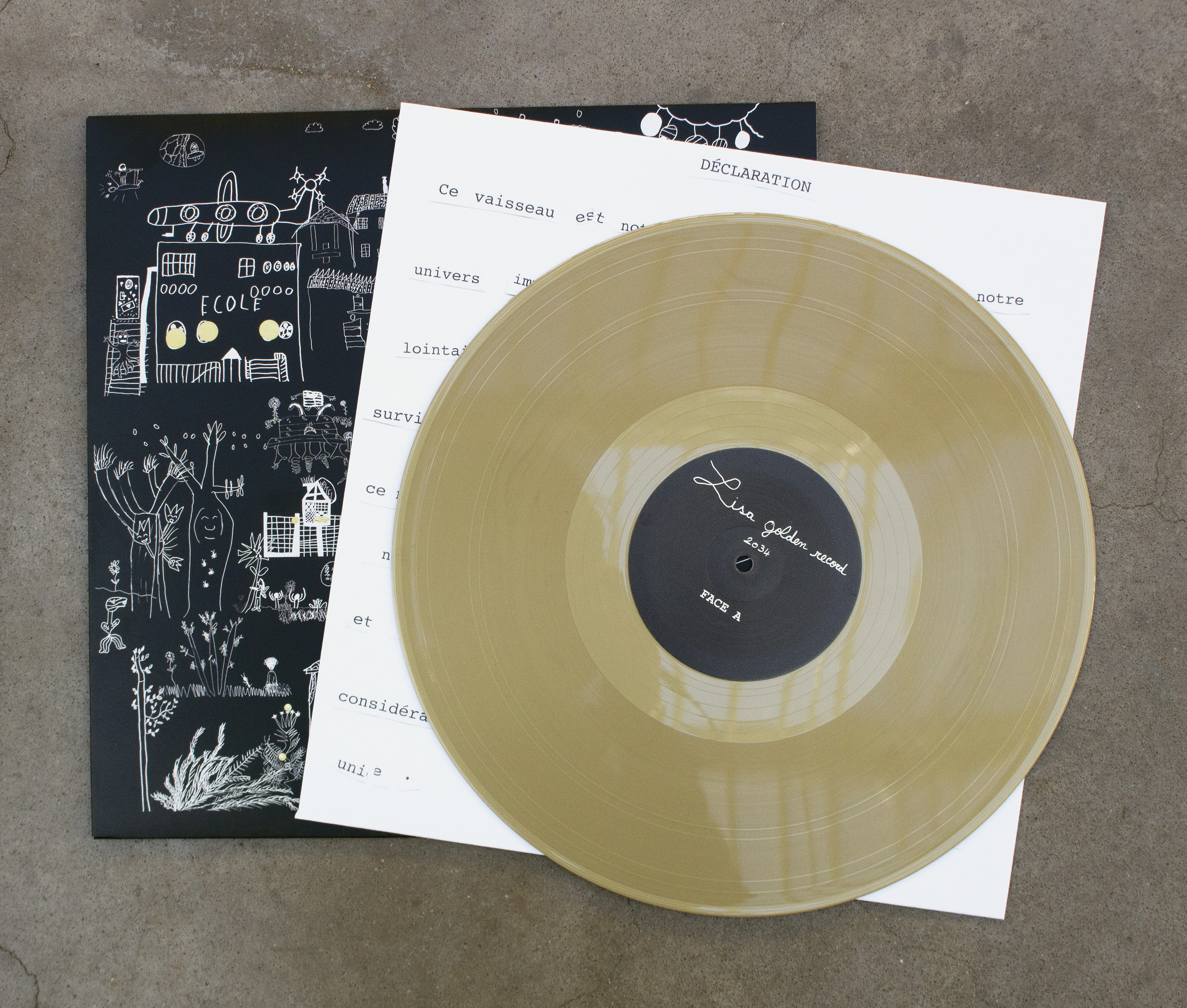 Mystérieux vinyle doré, il réunit les sons de la vie sur Terre enregistrés dans le cadre d’une résidence artistique menée par Armelle Desmaux, à Sermaise avec des enfants d’une classe de CM1-CM2.