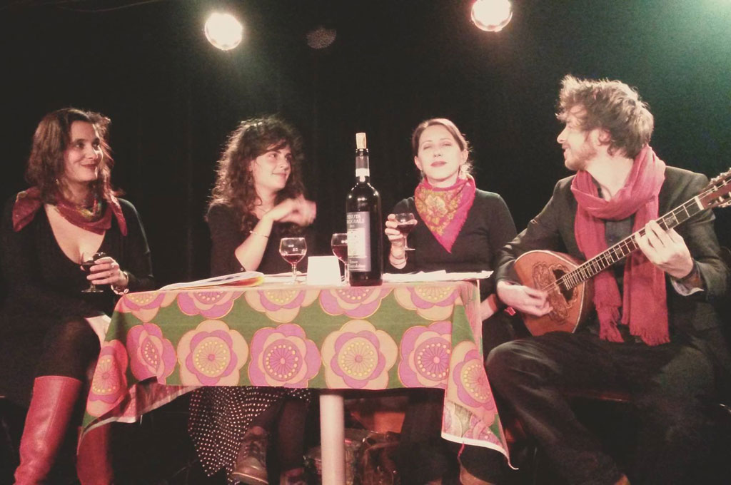 Le temps d’un verre de vin, c’est une immersion dans l’intimité de leurs brèves de comptoir musicales. Les Orecchiette vous mènent au sud de l’Italie avec ses chants traditionnels et populaires: Sérénades d’amours impossibles, chants d’exils et de récoltes sont les thèmes phares de leur récit musical. Les voix de Caroline, Héléna, Silvia et Samuel dialoguent en polyphonies et s’accordent avec complicité aux notes grecques du bouzouki.