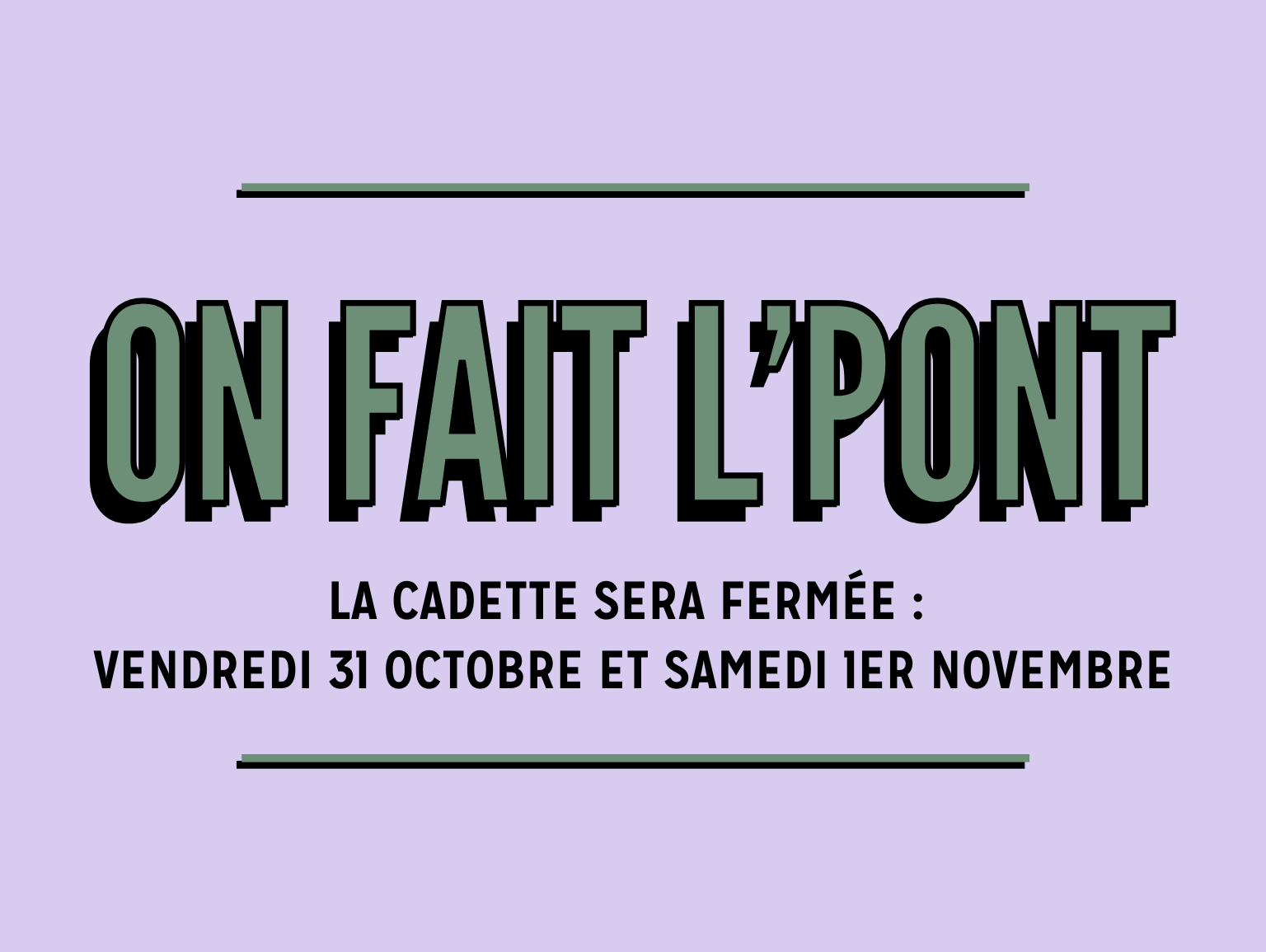 Mais à noter aussi que La Cadette fait le pont le vendredi 31 Octobre !
