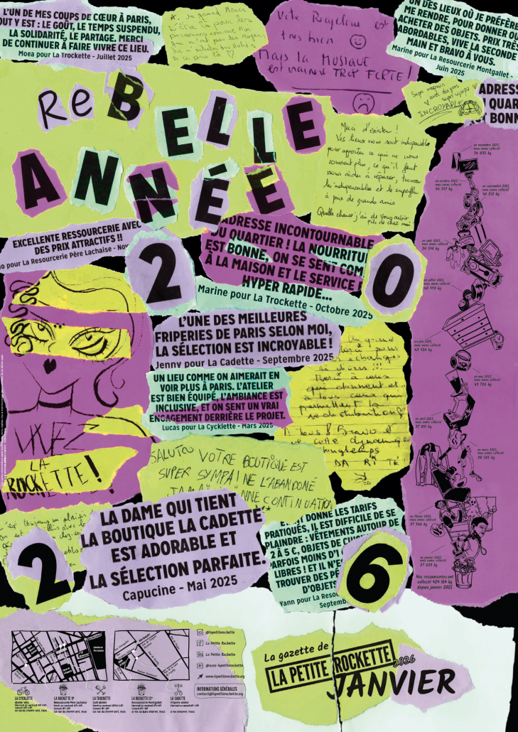 Aujourd’hui La Petite Rockette c’est deux ressourceries, un café atelier & restaurant anti gaspi (La Trockette), un espace culturel (11ème), un atelier vélo coopératif (La Cycklette), un pôle d’animation/sensibilisation locale, un pôle de formation aux métiers émergents liés au réemploi, un chantier d’insertion, un espace pédagogique et boutique de vêtements de seconde-main (La Cadette). C’est aussi 50 salarié·e·s, plus de 200 bénévoles et 2000 adhésions par an.