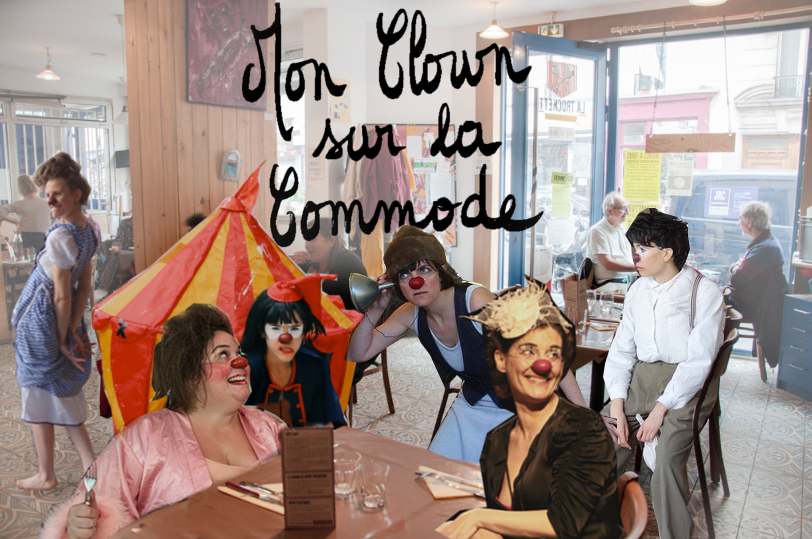 Ramassis d’idées, paroles et fantasmes de 6 clownes en marmelade, formant un tout sucré et acerbe à la fois. Du solo au quintette, bienvenue à ce cabaret in situ, dont tu sortiras sans doutes un peu changé ! De et avec Sandrine Coletti, Marie Crapanzano, Camille Derijard, Marine Dubruque, Laurie Le Noac’H et Coralie Paquelier. Elles forment la compagnie Mon Clown sur la Commode.