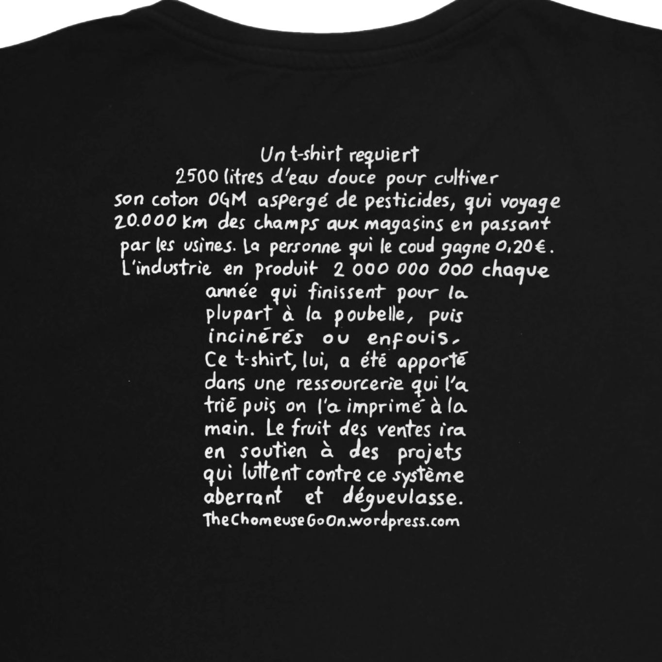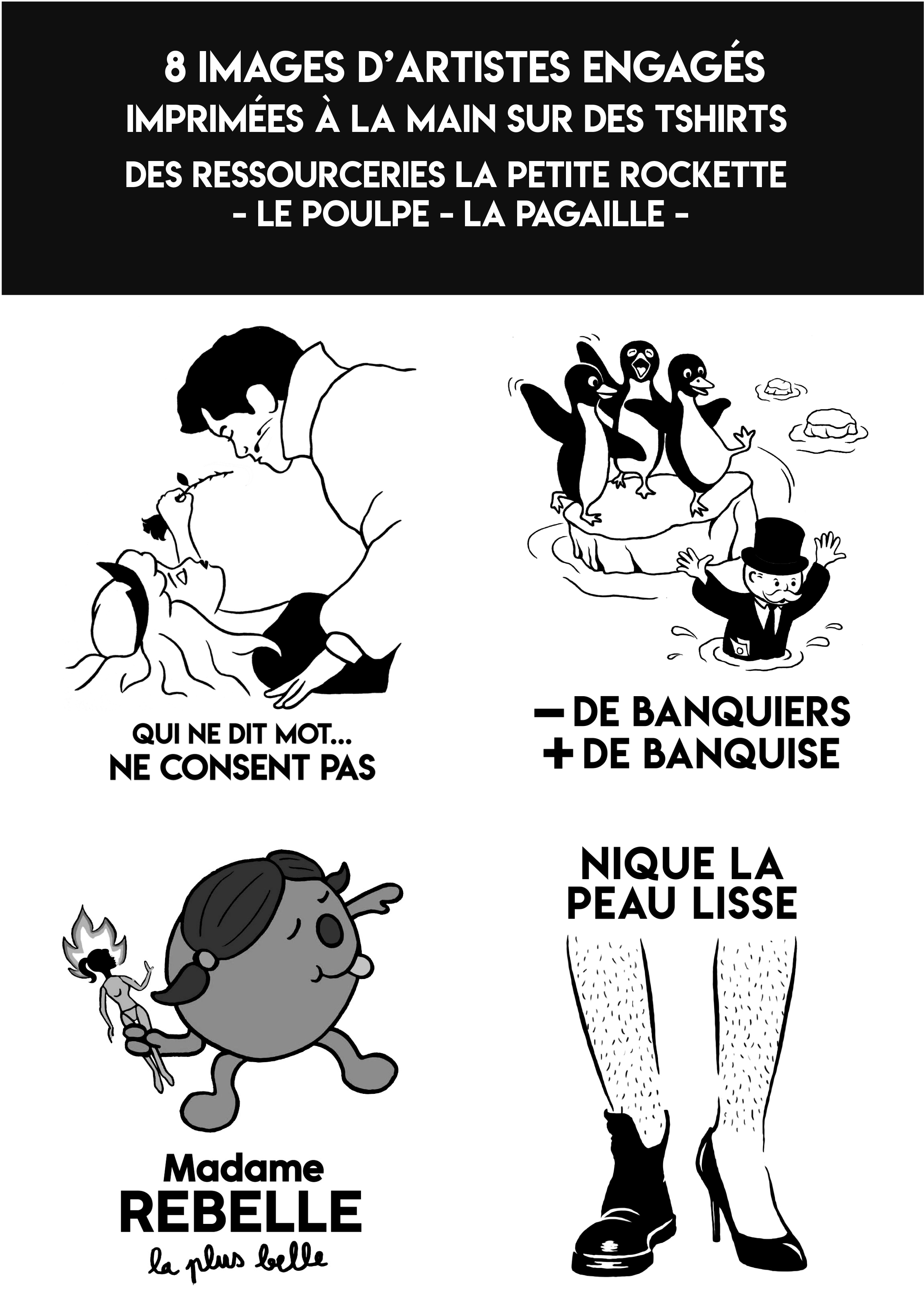 vous propose de propager des messages engagés sur des t-shirt sérigraphiés issus des ressourceries de La Petite Rockette, du Poulpe et de La Pagaille