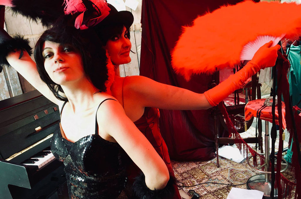L’Angély n’est pas un spectacle mais un univers : cabaret de contrebande, “bordel libre et autogéré”, maison close ouverte inspirée de La Belle Époque et des Années Folles : boudoir rococo, velours, miroirs, dentelles, porte-jarretelles, chapeaux, masques, plumes, paillettes, piano, poèmes sulfureux et… guitare électrique ! Les “ Filles” sont des poétesses, des conteuses, des divas, des rocks stars glam, des Drama Queen et leurs prestations purement artistiques.