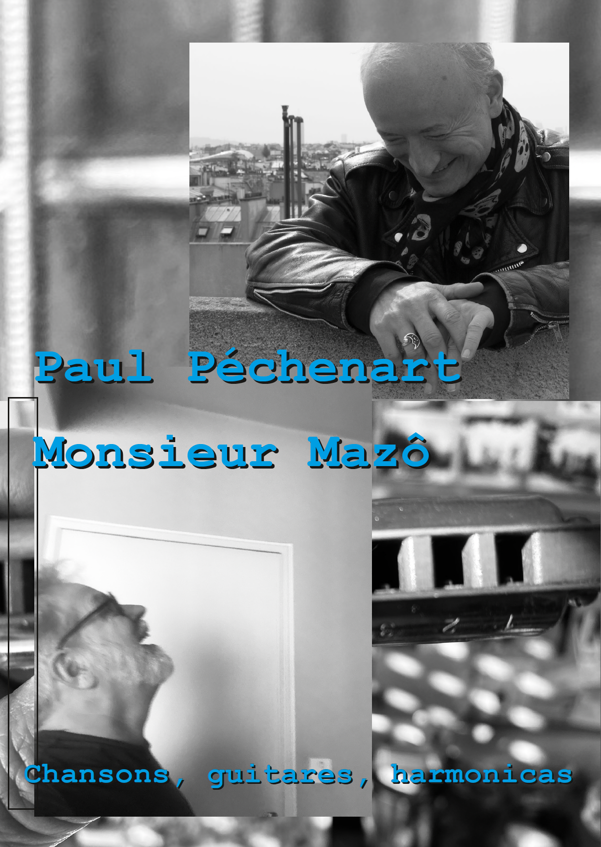 Paul Péchenart et Monsieur Mazô pour des chansons un brin rockeuses, un brin moqueuses, un peu d’électricité dans l’air et la complainte joyeuse de l’harmonica.