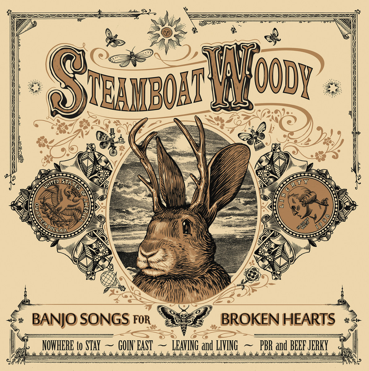 Steamboat Woody est un oneman-band qui, avec son banjo, sa valise et son harmonica, chante ce qui pourrait être la bande son d’un western haletant, mais avec de beaux couchés de soleil. Ancien punk-rocker converti à l’acoustique, il joue une musique country mélangeant les sonorités des ballades old-time des Appalaches à l’énergie du bluegrass en battant du pied à en user ses santiags.
